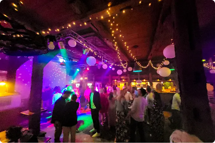 Eine professionelle Musik- und Lichtanlage sowie ein Beamer können auf Wunsch genutzt werden – so fallen oft weniger zusätzliche Technikkosten an.