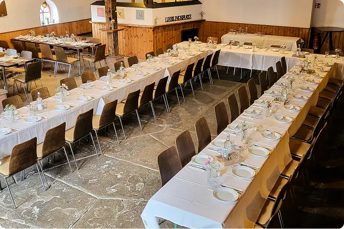 Flexible Raumkonzepte für 80 bis 200 Personen – von gemütlich bis repräsentativ.