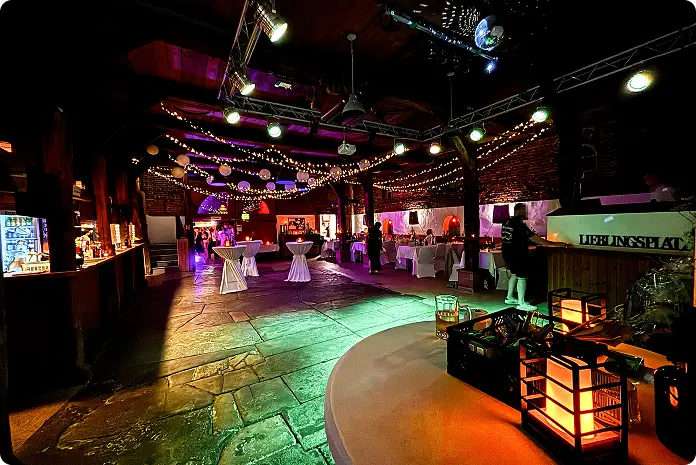 Eine professionelle Musik- und Lichtanlage sowie ein Beamer können auf Wunsch genutzt werden – so fallen oft weniger zusätzliche Technikkosten an.